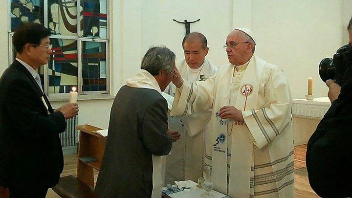 Al preguntarle por su nombre cristiano, que en Corea se adquiere cuando la persona (por lo generales adultas) recibe este sacramento, el hombre respondió "Francisco" en honor al Santo Padre.
