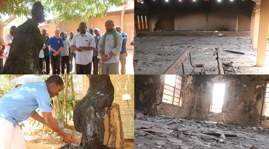 Según informó el sitio web de la Iglesia Católica en Níger, esta imagen de la Virgen que quedó carbonizada “¡es algo muy simbólico! Porque esta estatua, perteneciente a la parroquia de San Agustín, es uno de los raros objetos de piedad que no se consumieron en los incendios que afectaron a las iglesias”.