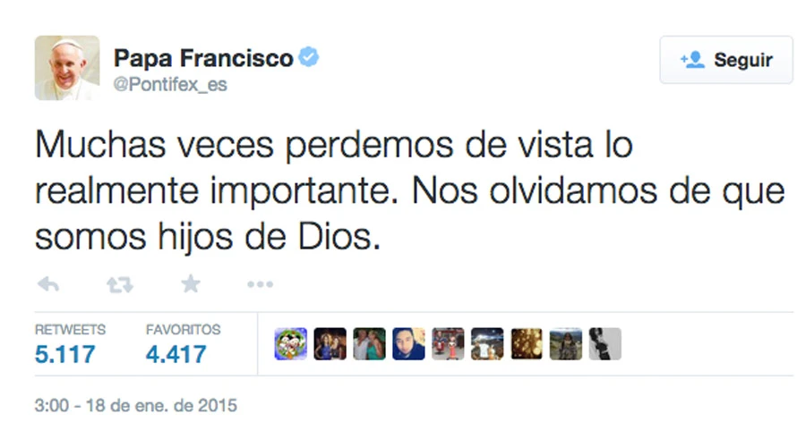 “Muchas veces perdemos de vista lo realmente importante. Nos olvidamos de que somos hijos de Dios”, señaló el Santo Padre desde su cuenta @Pontifex.