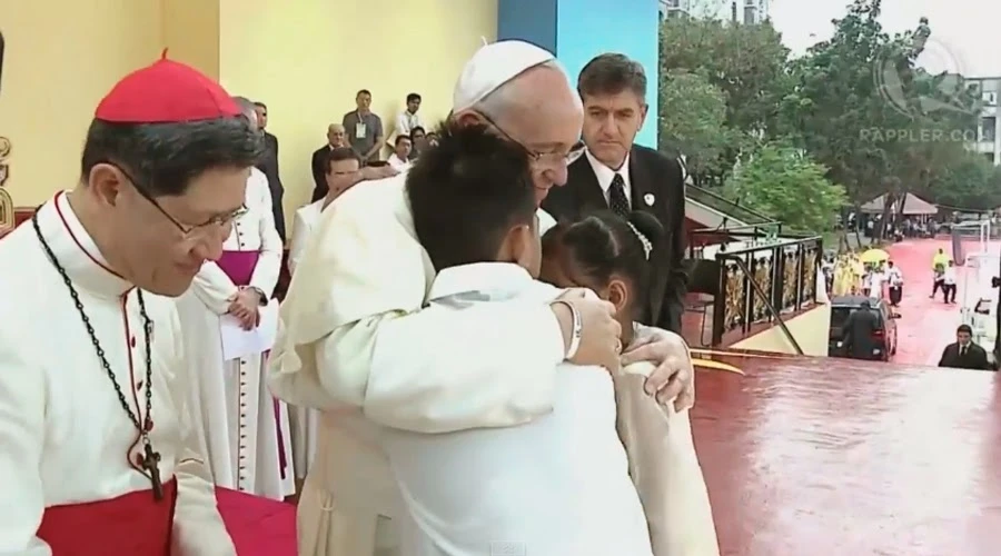 Jun Chura, de 14 años de edad, y Glyzelle Palomar, una niña de 12 años, relataron al Papa la vida dura que vivieron en las calles de Manila, en medio de una serie de peligros y alimentándose con restos de comida que encontraban en la basura.