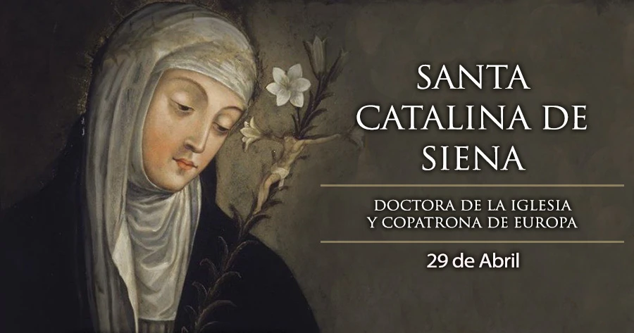 Santa Catalina nació en Siena (Italia) en 1347 en una familia de padres piadosos. Gustaba mucho de la oración, las cosas de Dios, y a los siete años hizo un voto privado de virginidad. Más adelante, su familia trató de persuadirla para que se casara, pero ella se mantuvo firme y sirvió generosamente a los pobres y enfermos.