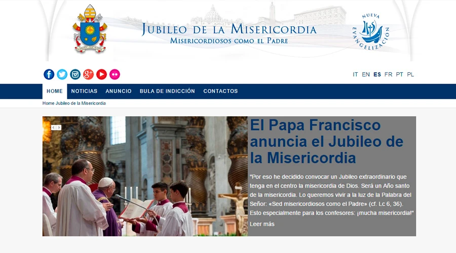 — Jubileo.va (@Jubileo_va) abril 19, 2015Además, el Pontificio Consejo para la Promoción de la Nueva Evangelización, dirigido por Mons. Rino Fisichella, pondrá a disposición de los fieles otros detalles del Jubileo a través del sitio web Nova Evangelizatio y la red de fotografía Flickr.