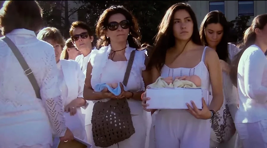 El pasado 12 de abril, más de un centenar de mujeres vestidas de blanco se reunieron frente al Palacio Presidencial de Chile y emprendieron su marcha hasta el frente de la Catedral de Santiago, en donde se realizó un acto artístico sobre el drama del aborto que sufre el bebé y la mujer, que conmovió a varios de los transeúntes que vieron la puesta en escena.