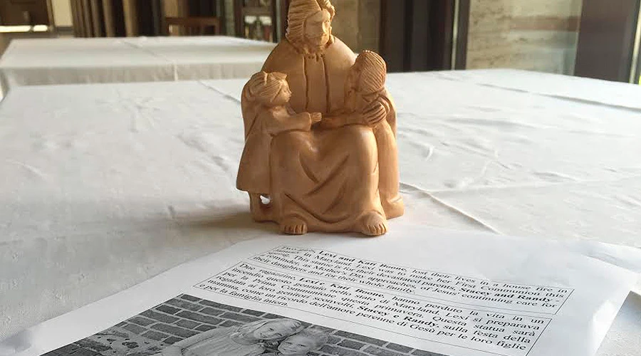 En declaraciones a ACI Prensa, el P. Aaaron Qureshi, quien compró la imagen de madera en Tierra Santa en la que se ve a Jesús abrazando a dos niños, dijo que “el Santo Padre leyó la noticia sobre lo que sucedió y lo vi muy conmovido. Rezó por la familia y las niñas y de hecho puso su mano sobre la foto como signo de su afecto por ellos”.