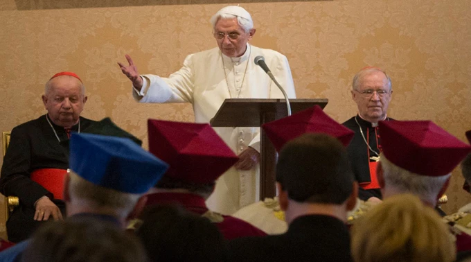 “No conocemos el futuro de nuestra cultura y de la música sagrada. Pero una cosa está clara: donde realmente se da el encuentro con el Dios viviente que en Cristo viene hacia nosotros, allí nace y crece nuevamente también la respuesta, cuya belleza proviene de la verdad misma”, dijo antes de agradecer a las dos universidades que le hayan conferido el doctorado honoris causa y el servicio que realizan a la Iglesia.