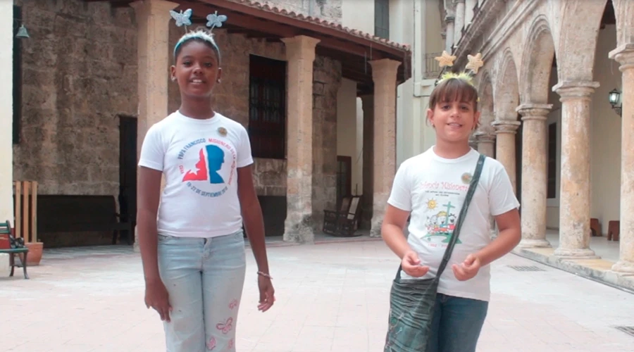 De manera amena y a través de un diálogo de aproximadamente un minuto, ambas niñas anuncian a las personas que un amigo especial está por venir: “¡Se trata del Papa Francisco!”. Acto seguido, invitan a los cubanos a prepararse para recibirlo, yendo a Misa y acercándose a sus catequistas.