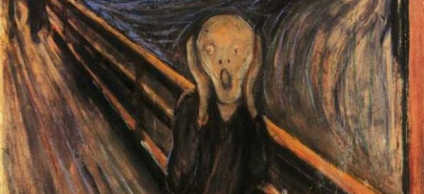 Una tarde de 1892, paseando con dos amigos, de repente el cielo se tiñó de rojo sangre. Munch se detiene, agotado y abrumado tiene un estremecimiento de tristeza, siente un dolor desgarrador en el pecho. Sus amigos siguieron caminando, Munch permanece paralizado, sigue temblando de miedo. Ahí escucho -y vivió- ese grito que luego plasmó en famoso cuadro.