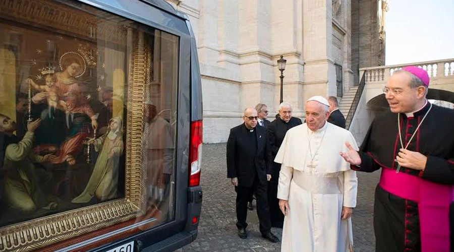 Se trata de una capilla instalada en un automóvil que permite llevar a todas las diócesis del mundo la imagen de la Virgen de Pompeya, el Santuario que se encuentra en Nápoles y que fue visitado por el Pontífice el pasado mes de marzo.