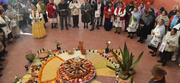 Nos volteamos todos/as hacia el norte, lugar que nos recuerda nuestros orígenes, nuestras raíces, las abuelas y a abuelos que nos han precedido y a quienes les debemos rumbo. Hacemos memoria agradecida por todos los dones recibidos de la cultura en la que hemos nacido, de la herencia sagrada que nos han transmitido. Recordamos las generaciones que nos anteceden y que han cuidado amorosamente nuestra comunidad, nuestra milpa, nuestras montañas, nuestros bosques y nuestros manantiales y cenotes. Una persona enciende la vela blanca y coloca una ofrenda de frutas que comparten con nosotros su olor, su color y su sabor. Dirige una oración de agradecimiento por las abuelas y los abuelos con quienes estamos en impagable deuda. Agradece a las y los primeros fundadores de la Escuela, primeros alumnos, primeros promotores. Su testimonio sigue animándonos, sea el de quienes aún viven, sea de quienes, ya muertos, guardamos en nuestra memoria colectiva. Desgranamos en el silencio de nuestro corazón esa lista de nombres de quienes nos han precedido. Hacemos una reverencia profunda hacia el norte, lugar de nuestros ancestros.