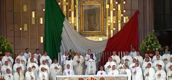 Escuchar este pasaje evangélico en esta casa tiene un sabor especial. María, la mujer del sí, también quiso visitar los habitantes de estas tierras de América en la persona del indio san Juan Diego. Así como se movió por los caminos de Judea y Galilea, de la misma manera caminó al Tepeyac, con sus ropas, usando su lengua, para servir a esta gran Nación. Así como acompañó la gestación de Isabel, ha acompañado y acompaña la gestación de esta bendita tierra mexicana. Así como se hizo presente al pequeño Juanito, de esa misma manera se sigue haciendo presente a todos nosotros; especialmente a aquellos que como él sienten «que no valían nada» (cf. Nican Mopohua, 55). Esta elección particular, digamos preferencial, no fue en contra de nadie sino a favor de todos. El pequeño indio Juan, que se llamaba así mismo como «mecapal, cacaxtle, cola, ala, sometido a cargo ajeno» (cf. ibíd, 55), se volvía «el embajador, muy digno de confianza».