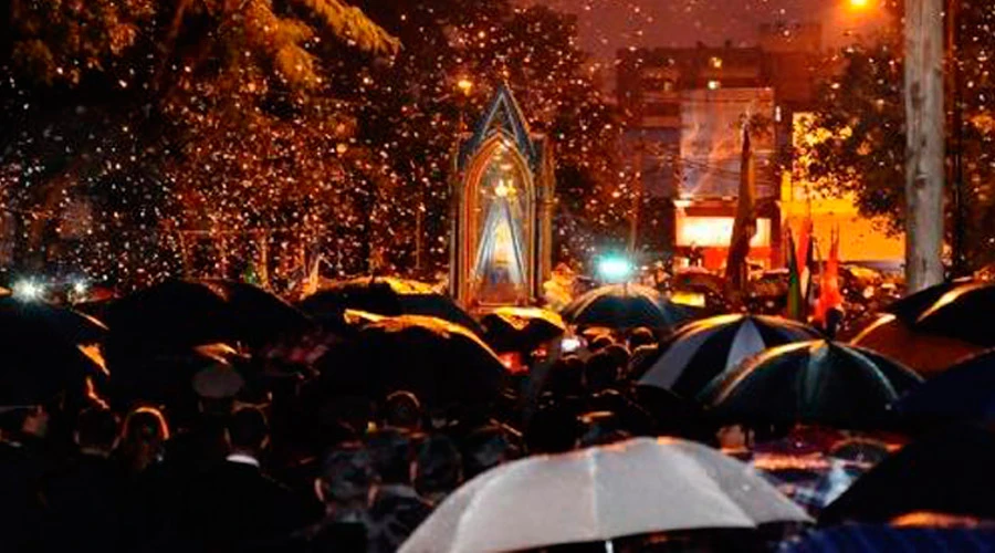 La procesión recorrió bajo la lluvia 16 cuadras del casco céntrico y regresó a las 8:15 p.m. al Paseo de la Fe, donde miles de fieles bajo paraguas agitaron pañuelos blancos ante la imagen mariana.
