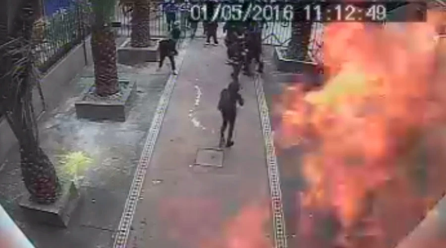 “Es muy lamentable esta actitud y realmente es chocante ver las imágenes que pudimos observar gracias a las cámaras de seguridad, donde se ve cómo una chica joven lanza la bomba sobre la puerta de la iglesia”, afirmó el sacerdote en un comunicado.