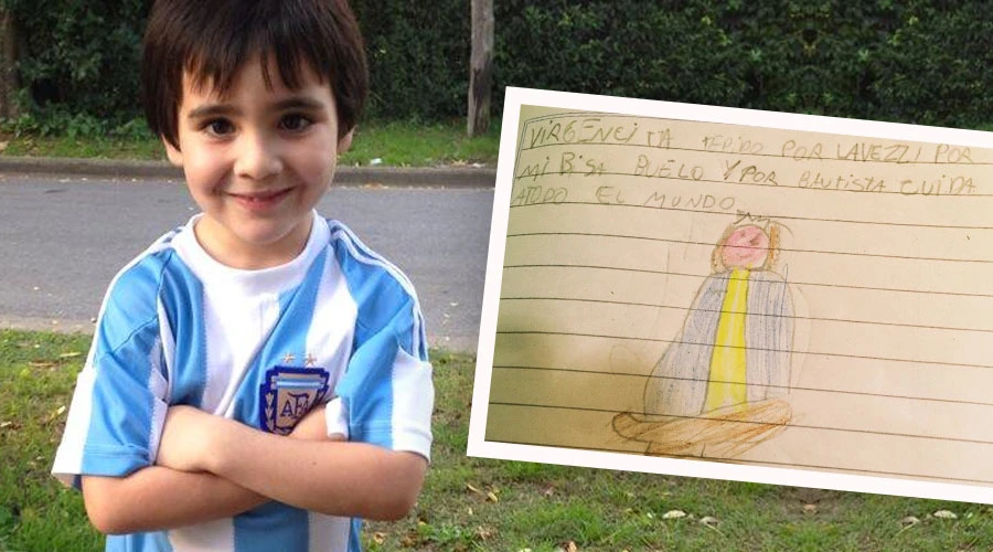 "Virgencita te pido por Lavezzi, por mi bisabuelo y por Bautista. Cuida a todo el mundo", escribió Franco y dibujó a la Virgen.
