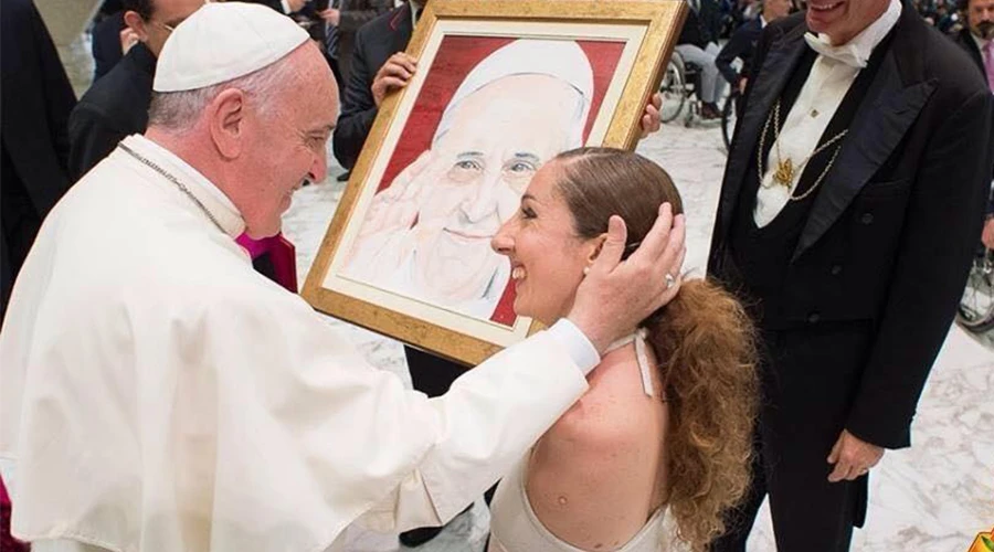 Su capacidad artística le ha llevado a regalar un retrato pintado por ella a San Juan Pablo II y al Papa Francisco.