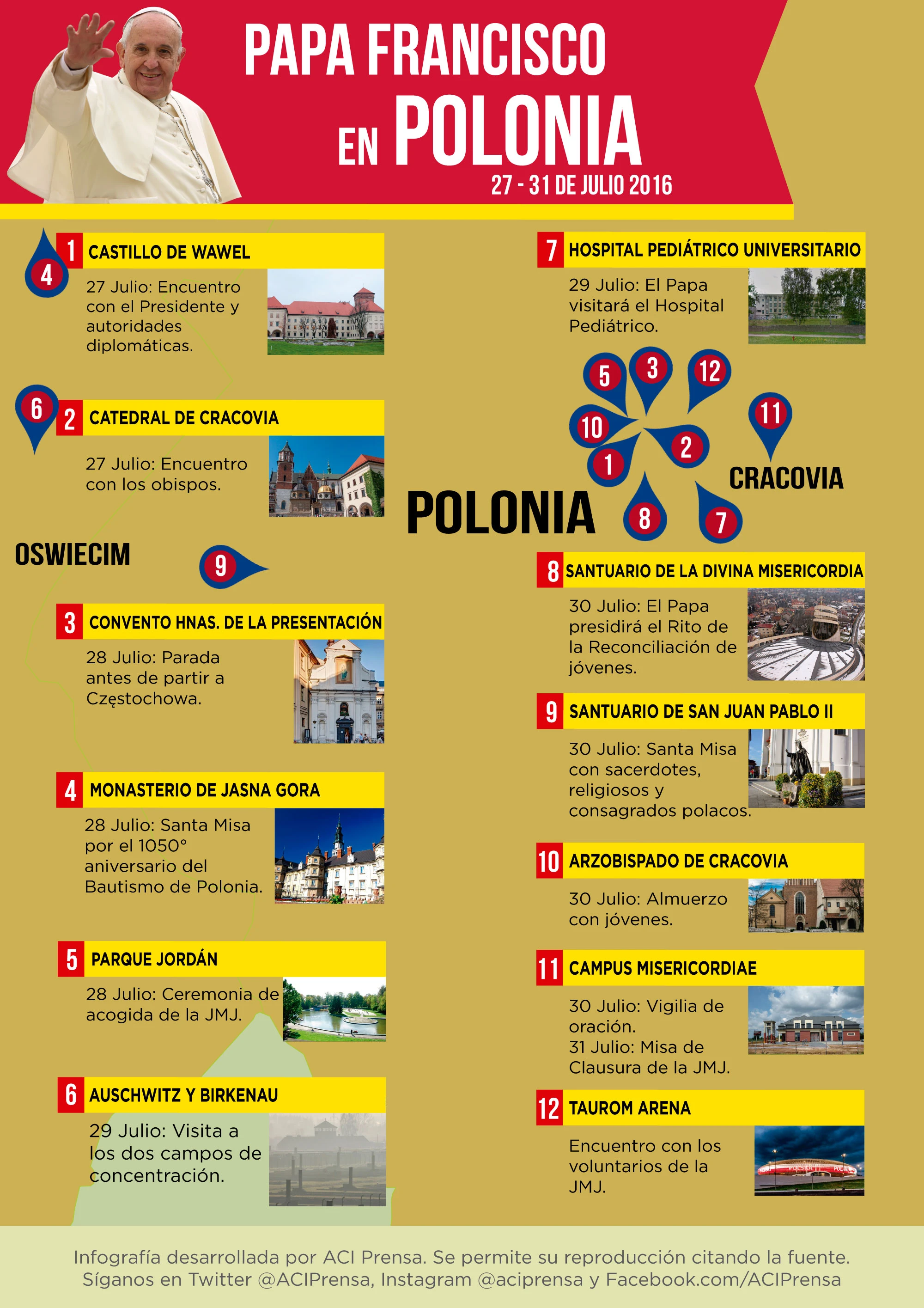 [INFOGRAFIA] Estos son los lugares que el Papa Francisco visitará en Polonia Cracovia, 15 Jul. 16 (ACI).- Estos los lugares donde se realizarán los eventos durante la visita del Papa Francisco a Polonia del 27 al 31 de julio. El Evangelio del día 10:48 a.m. Compartir a: Twitter Facebook URL Imprimir Correo Electrónico Etiquetas: ACI Prensa