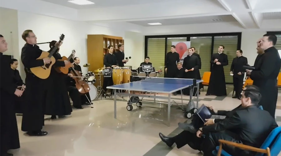 El video fue grabado en la sala de estar del seminario de Roma al que Estanislao pertenece, un lugar donde suelen pasar sus tiempos libres y fines de semana.