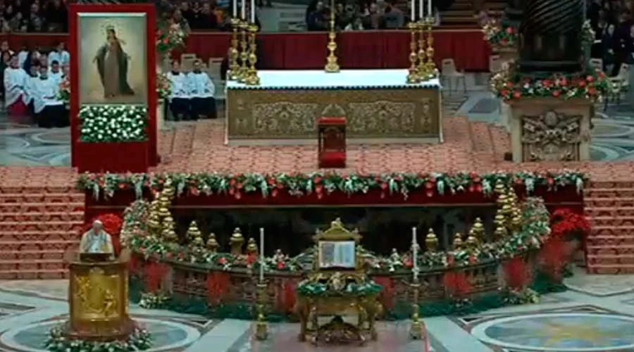 VATICANO, 31 Dic. 16 (ACI).- El Papa Francisco presidió este 31 de diciembre en la Basílica de San Pedro la celebración de las Vísperas de la Solemnidad de María Madre de Dios y Tedeum de agradecimiento por el año 2016. “Frente al año que termina qué bien nos hace contemplar al Niño-Dios. Es una invitación a volver a las fuentes y raíces de nuestra fe. En Jesús la fe se hace esperanza, se vuelve fermento y bendición”, afirmó.
