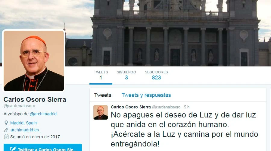 — Carlos Osoro Sierra (@cardenalosoro) 6 de enero de 2017El perfil se lanzó en la mañana del viernes 6 de enero y en su primera hora en Twitter alcanzó más de 600 seguidores.
