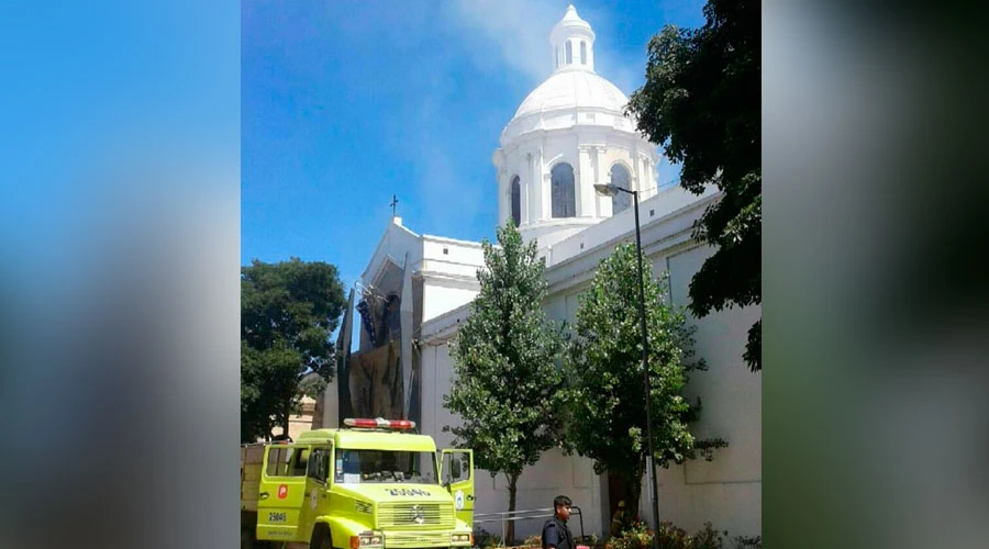 Los medios locales señalan que el fuego se originó por un desperfecto eléctrico en el órgano del templo.