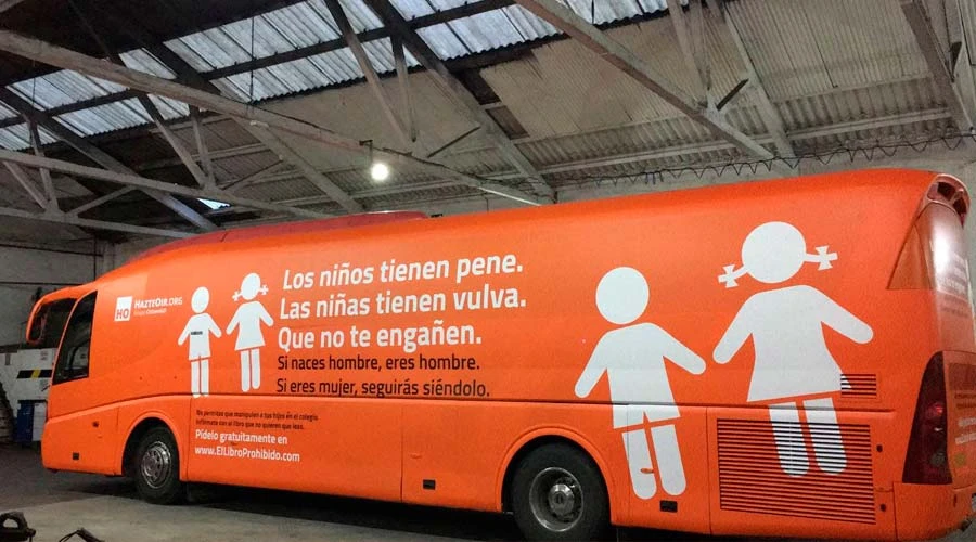 HazteOír lanzó el pasado lunes la campaña “El bus que no miente”, en la que un autobús recorre las calles de Madrid con el texto: “Los niños tienen pene. Las niñas tienen vulva. Que no te engañen. Si naces hombre, eres hombre. Si eres mujer, seguirás siéndolo”.