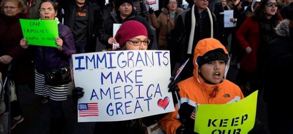 Como respuestas, varias entidades civiles de Estados Unidos organizaron una serie de protestas, el pasado jueves 16, para mostrar la importancia de los trabajadores inmigrantes para el estilo de vida y la economía de ese país. (AP, 16 feb. 2017)