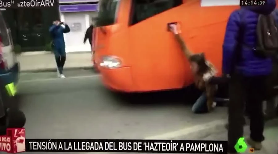 VIDEO: Turba ataca con piedras el bus de HazteOír en Pamplona https://t.co/RQ9BW7B6vy