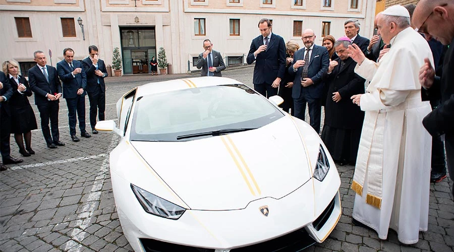 El miércoles 15 de noviembre de 2017, antes de la Audiencia General y frente a la Casa Santa Marta en el Vaticano, ejecutivos de la empresa automotriz Lamborghini le obsequiaron al Santo Padre el automóvil personalizado.