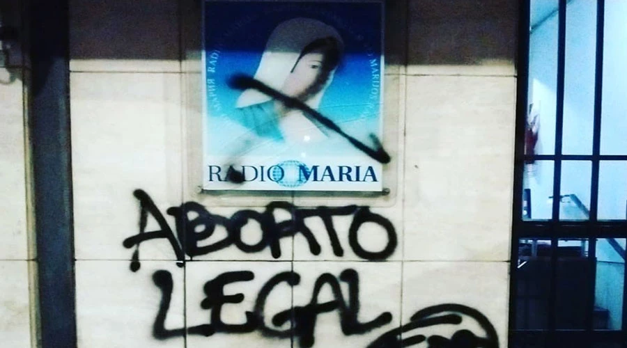 El ataque a la sede de Radio María ocurrió durante la marcha contra el decreto nacional sobre el nuevo rol de las Fuerzas Armadas y a pocos días del debate de la ley del aborto en el Senado.
