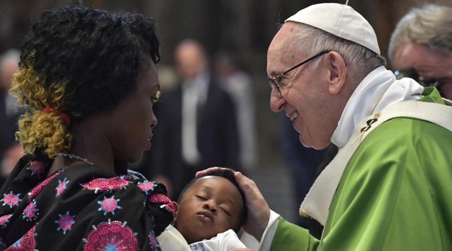 Al finalizar la homilía en la Misa por los migrantes celebrada en la Basílica de San Pedro del Vaticano este viernes 6 de julio con motivo del quinto aniversario de la visita del Santo Padre a la isla de Lampedusa, el Santo Padre quiso dirigir unas palabras a los socorristas y a algunos de los migrantes y refugiados rescatados por ellos.