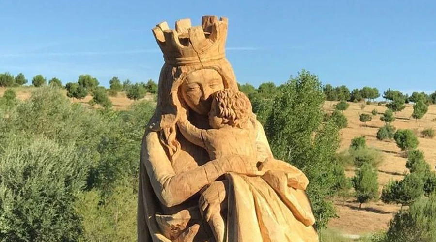 La talla de la Virgen del Abrazo, que representa a María abrazada a su hijo el Niño Jesús, se realizó con los permisos correspondientes y aprovechando el tronco de un árbol ya talado.