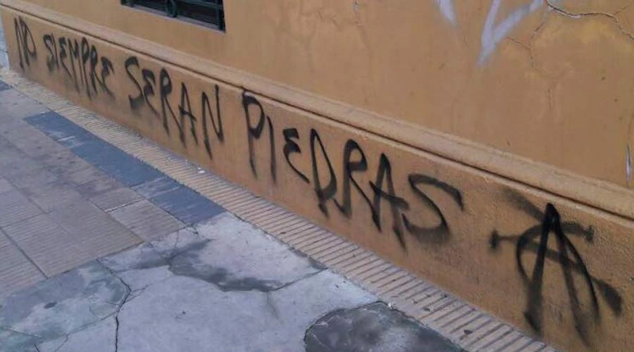 “Aborta al Papa”, “Muerte a Francisco” y “Fuego a la Iglesia” son algunas de los mensajes que aparecieron en los muros del colegio y del templo el 7 de septiembre.