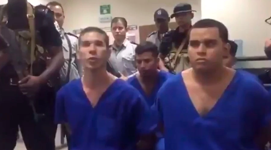 Impresionante. Estos presos políticos nicaragüenses rezan esposados en su juicio, repiten una y otra vez que quieren una Nicaragua libre. pic.twitter.com/nNUZqg7cGb