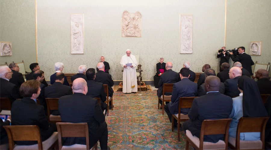 El Papa concluyó su discurso recordando a los participantes en el Capítulo General que “con la luz del Espíritu Santo encontréis los caminos para continuar con fuerza renovada recogiendo los signos de los tiempos, las urgencias sociales y la pobreza espiritual y material de cuantos escuchan las palabras y gestos de salvación y de esperanza”.