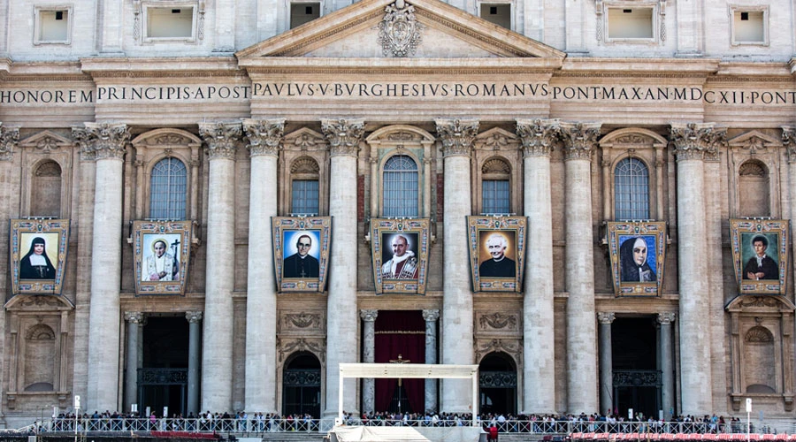 Desde hace varios días, la fachada de la Basílica vaticana está engalanada con los tapices que representan los rostros de cada uno de los nuevos santos. También está ya preparado el altar frente al atrio de la Basílica y las sillas para los fieles en la plaza rodeada por la imponente columnata barroca de Bernini.