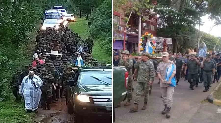 En la peregrinación participaron efectivos del Ejército, Gendarmería Nacional, Prefectura Naval, Policía de Seguridad Aeroportuaria, Policía Federal, Policía Provincial de Misiones, Unidad Regional V y Comando, y el Cuerpo de Guardaparques del Parque Nacional Iguazú.