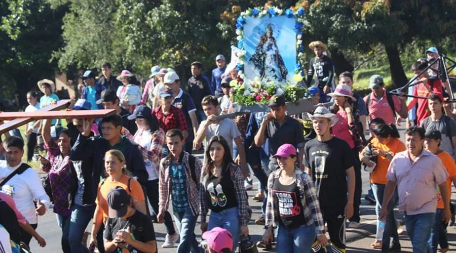 La peregrinación de unos 14 kilómetros comenzó en la tarde. Al llegar a la explanada de la Basílica de Caacupé, cientos de jóvenes provenientes de las diócesis de Ciudad del Este, San Lorenzo, Castrense, Santísima Encarnación y de la Arquidiócesis de Asunción rezaron el Rosario formando una “cruz humana”.