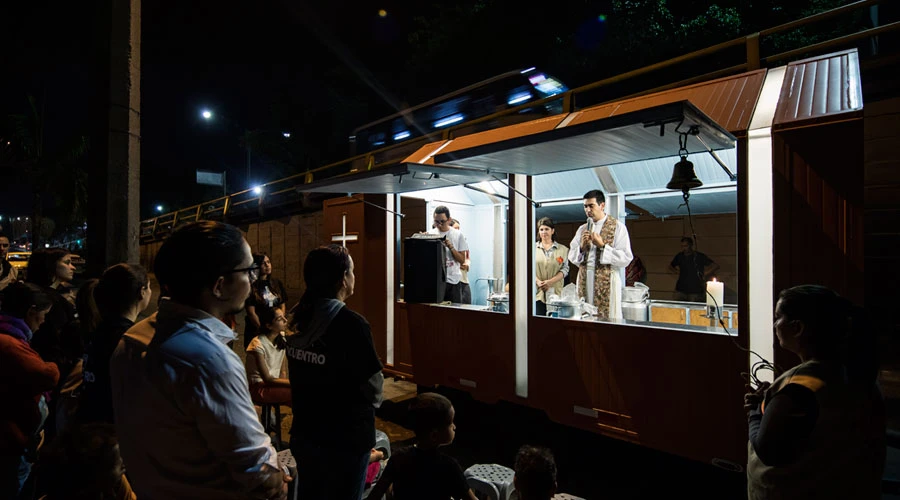 El P. Escobar dijo que la “Tienda del Encuentro” está en consonancia “con lo del Papa Francisco de una Iglesia en salida, de ir a buscar a la gente. Entonces tenemos esta capilla con ruedas”.