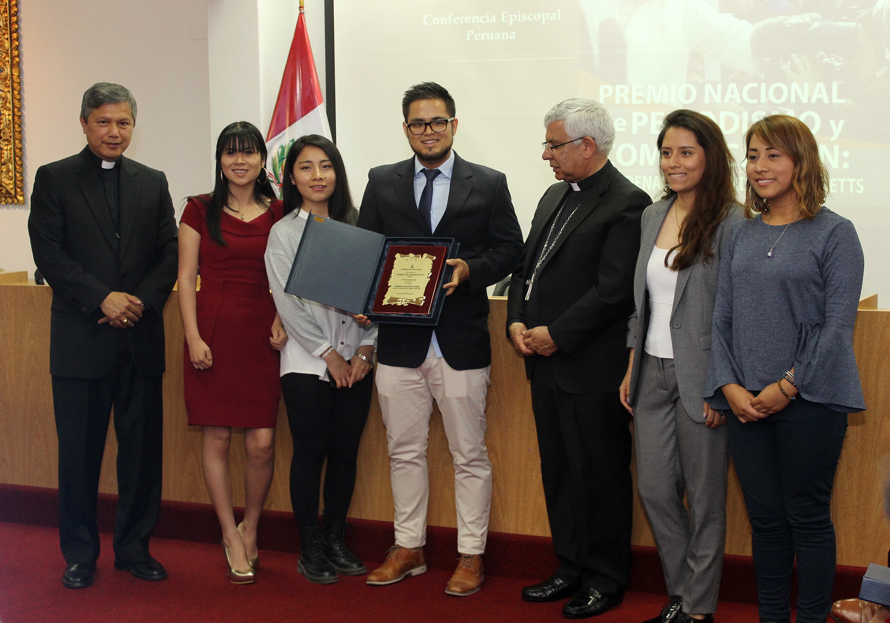 En la ceremonia de premiación estuvieron presentes Mons. Norberto Strotmann, Secretario General de la CEP; Mons. Ricardo García, Obispo Prelado de Yauyos, Mons. Raúl Chau, Obispo Auxiliar de Lima y Presidente de la Comisión Episcopal de Comunicación; y el P. Guillermo Inca, Secretario General Adjunto de la CEP.