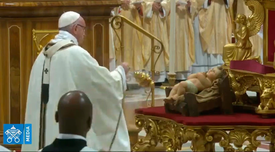 El Santo Padre preside la Misa por la Solemnidad de la Natividad del Señor desde las 9:30 p.m. (hora local), y es concelebrada con cardenales, obispos y sacerdotes. La Eucaristía fue precedida por el canto de la Kalenda, que es el canto del anuncio de Navidad.