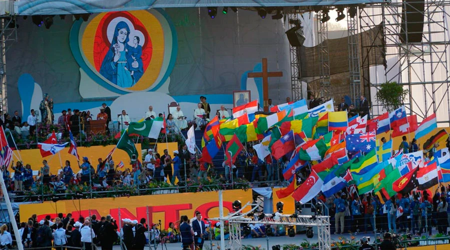 — ACI Prensa (@aciprensa) 24 de enero de 2019Asimismo, luego de un desfile de banderas y de la presentación de la Cruz de las Jornadas Mundiales de la Juventud, cuatro jóvenes compartieron con el Papa breves reflexiones sobre las vidas de los santos y beatos de la JMJ Panamá 2019: San Juan Pablo II, San Juan Diego, San Martín de Porres, Santa Rosa de Lima, San Juan Bosco, San Óscar Romero, San José Sánchez del Río y la Beata Sor María Romero.