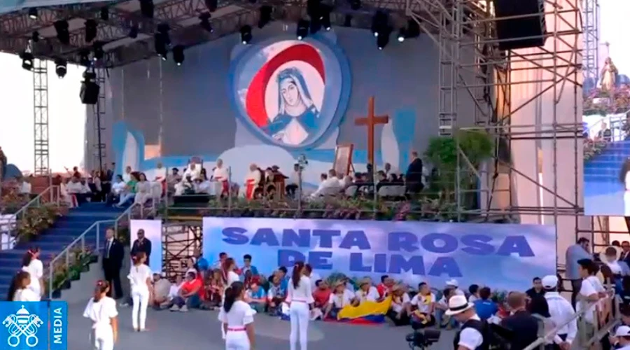 Acto seguido la joven habló de Santa Rosa de Lima, “virgen orante, primera flor de santidad de América. Joven alegre que iluminó su vida con la cruz de Cristo, a quien amó con entrañable piedad, con su vida silenciosa y sacrificada, con su amor ferviente. Nos propone la belleza de una vida limpia y pura, en contraste a un mundo apasionado que no ofrece la verdadera alegría”.