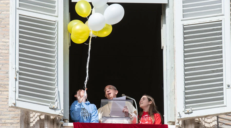 Tras el saludo del Papa, dos niños pertenecientes a la Acción Católica de Jóvenes se asomaron a la ventana junto al Santo Padre y leyeron un mensaje en el que afirmaban “que queremos la paz”.