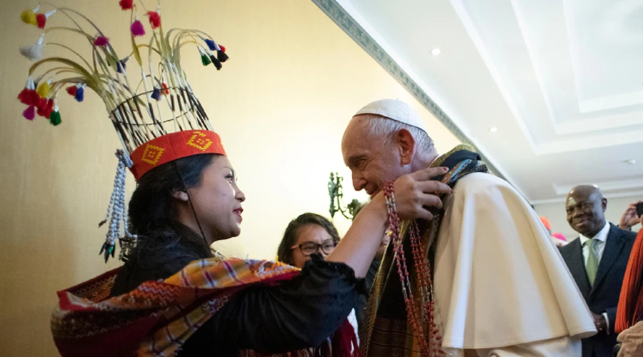 Tras pronunciar un discurso en la ceremonia de apertura de la 42º sesión del Consejo de Gobernadores del Fondo Internacional de Desarrollo Agrícola (FIDA) en la sede de la FAO, el Papa se reunió este 14 de febrero con un grupo de 38 representantes indígenas de 31 pueblos diferentes procedentes de América, África, Asia y del área del Pacífico.