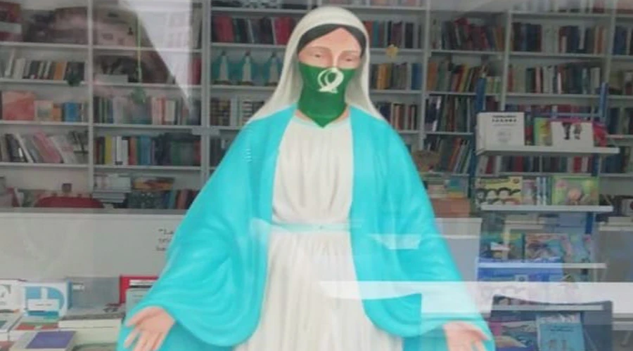 Los Abogados Católicos indicaron que el 7 de marzo un grupo de personas llevó en “una parodia de procesión” una imagen de la Inmaculada Concepción de María, amordazada con un pañuelo verde pintado en su rostro.