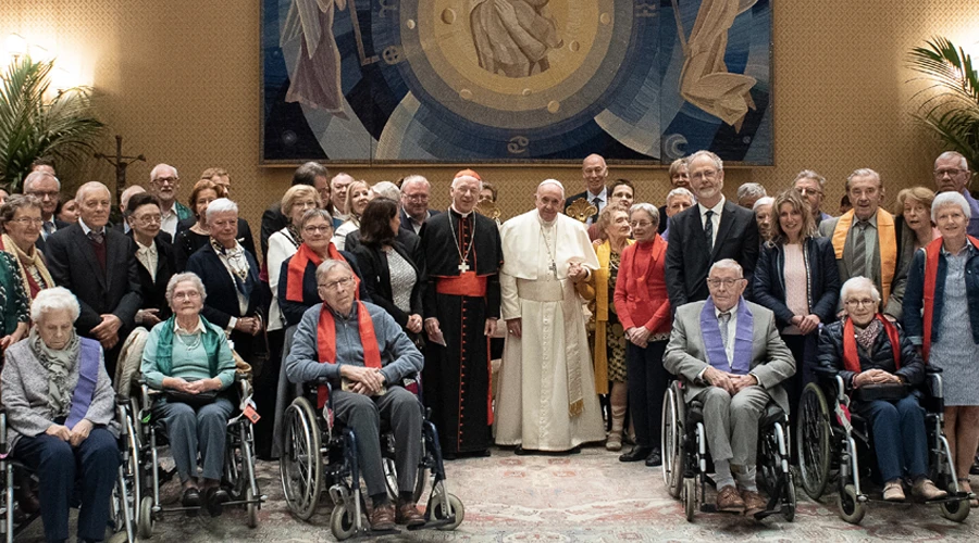 Antes de realizar la audiencia general este miércoles 3 de abril, el Santo Padre se reunió en la pequeña sala aledaña al Aula Pablo VI con un coro de la residencia de ancianos Bonheiden en Bélgica que acoge a enfermos de Alzheimer.