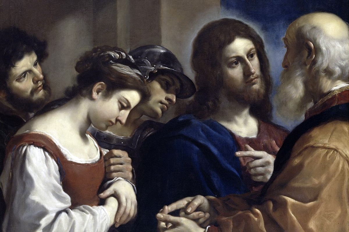 En aquel tiempo, Jesús se retiró al monte de los Olivos y al amanecer se presentó de nuevo en el templo, donde la multitud se le acercaba; y Él, sentado entre ellos, les enseñaba. Entonces los escribas y fariseos le llevaron a una mujer sorprendida en adulterio, y poniéndola frente a él, le dijeron: “Maestro, esta mujer ha sido sorprendida en flagrante adulterio. Moisés nos manda en la ley apedrear a estas mujeres. ¿Tú que dices?” Le preguntaban esto para ponerle una trampa y poder acusarlo. Pero Jesús se agachó y se puso a escribir en el suelo con el dedo. Como insistían en su pregunta, se incorporó y les dijo: “Aquel de ustedes que no tenga pecado, que le tire la primera piedra”. Se volvió a agachar y siguió escribiendo en el suelo. Al oír aquellas palabras, los acusadores comenzaron a escabullirse uno tras otro, empezando por los más viejos, hasta que dejaron solos a Jesús y a la mujer, que estaba de pie, junto a él. Entonces Jesús se enderezó y le preguntó: “Mujer, ¿dónde están los que te acusaban? ¿Nadie te ha condenado?” Ella le contestó: “Nadie, Señor”. Y Jesús le dijo: “Tampoco yo te condeno. Vete y ya no vuelvas a pecar”.