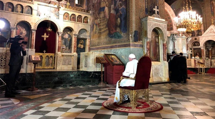 El Pontífice se detuvo durante varios minutos en oración delante del iconoclastos de la catedral y, posteriormente, se acercó al trono de los santos Cirilo y Metodio, patronos de Europa y evangelizadores del mundo eslavo.