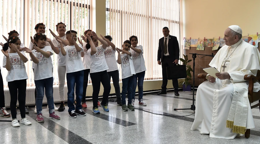 El Santo Padre agradeció a todos los presentes, a los voluntarios, a los padres y, en particular, a los niños procedentes de Siria e Irak por los dibujos que realizaron y por haber cantado “cantos muy bonitos, los niños traen alegría en su camino, un camino no siempre bello, por el dolor de dejar su patria y tratar de integrarse en otra patria”, dijo el Papa.