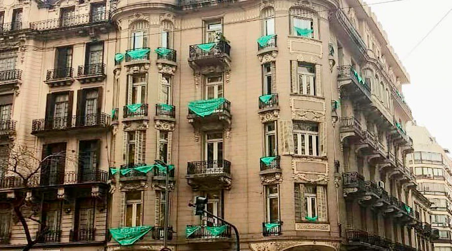 Desde agosto de 2018, en medio del debate sobre la legalización del aborto en Argentina, el edificio del INADI, ubicado en Av. de Mayo 1401 en Buenos Aires, luce pañuelos verdes gigantes en sus balcones.