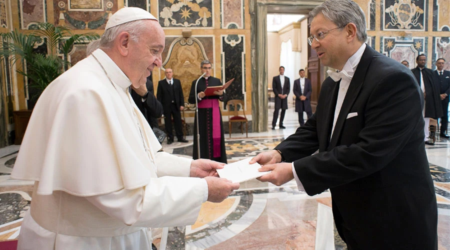 En su discurso pronunciado ante los diplomáticos en la Sala Clementina del Palacio Apostólico, el Papa advirtió que “la violencia y los conflictos armados son una de las mayores las mayores amenazas para vivir juntos en armonía”.